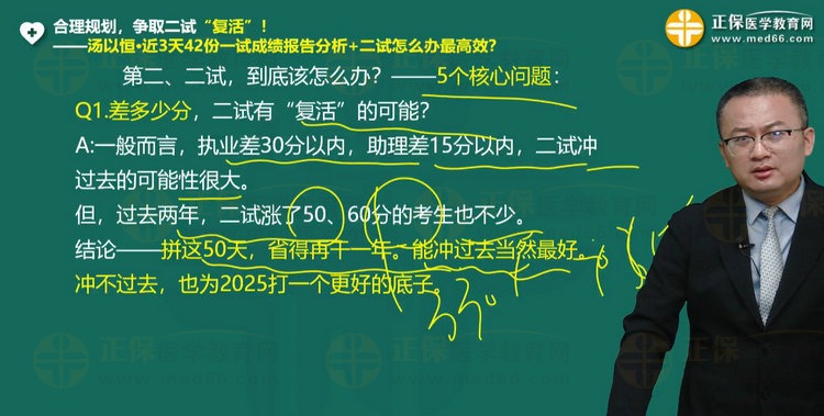 但是,過(guò)去兩年,二試漲了50、60分的考生也不少。所以相差分?jǐn)?shù)較大的學(xué)員也不要灰心放棄,一切事在人為!咬咬牙拼一回,正保醫(yī)學(xué)|教育網(wǎng)二試通過(guò)了明年就少受考綱變動(dòng)、報(bào)考審核嚴(yán)格的折磨!