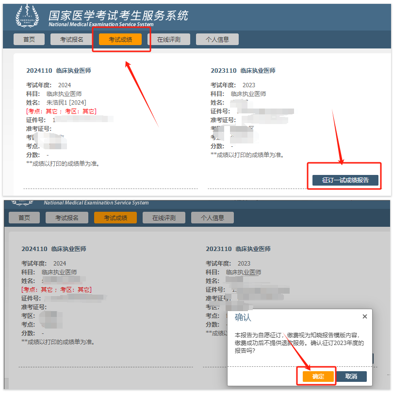 考生使用報(bào)名時(shí)注冊(cè)的用戶名和密碼(如已微信綁定,可直接掃碼登陸),登錄國家醫(yī)學(xué)考試考生服務(wù)系統(tǒng),進(jìn)入“考試成績”菜單,按網(wǎng)頁提示信息自愿完成征訂申請(qǐng)。