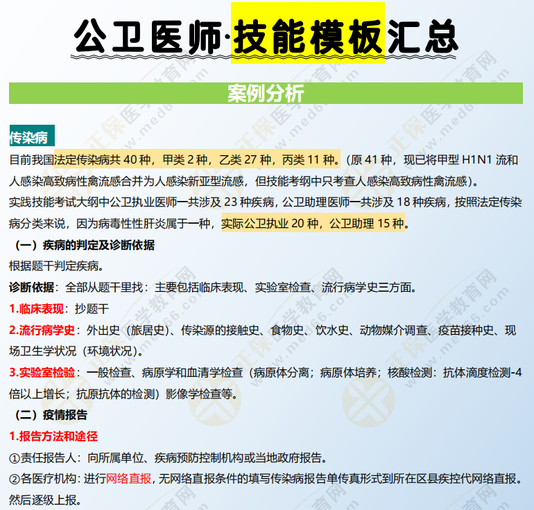 最后,我們?yōu)楣残l(wèi)生領域的考生準備了《公衛(wèi)醫(yī)師技能全站得分模版》。這份模版全面覆蓋了技能考試的三個站點,詳細列出了每個站點的得分點,并通過重點標注的方式,幫助考生快速掌握拿分技巧。無論是基礎知識考核還是現(xiàn)場操作演練,都能在這份模版中找到相應的應對策略。