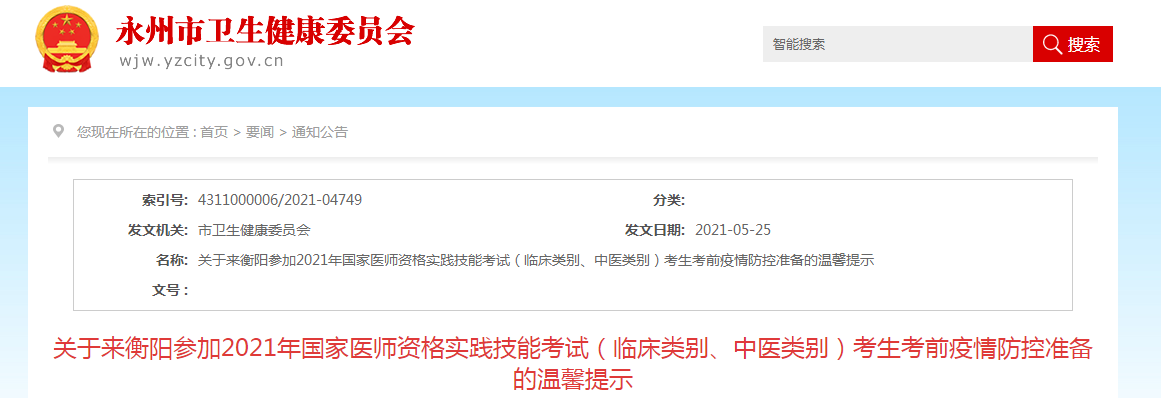 永州市轉(zhuǎn)發(fā)2021年實(shí)踐技能考試中醫(yī)類(lèi)別考生考前疫情防控提醒