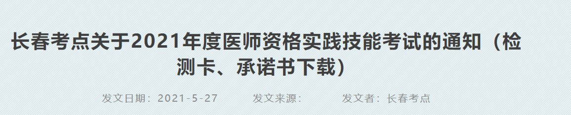 長(zhǎng)春考點(diǎn)關(guān)于2021年度醫(yī)師資格實(shí)踐技能考試的通知(檢測(cè)卡、承諾書下載)
