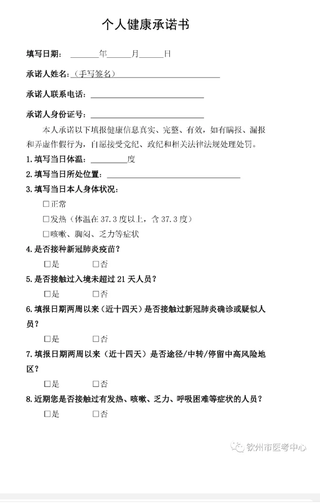 六、考生須自覺配合做好疫情防控工作,不得隱瞞或謊報旅居史、接觸史、健康狀況等疫情防控重點(diǎn)信息。個人材料不合格者一律不得進(jìn)入考試基地(校園)。