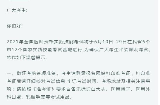 國家醫(yī)學(xué)考試網(wǎng)發(fā)布2021年醫(yī)師資格實(shí)踐技能考前通知!匯總!