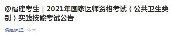 福建考區(qū)發(fā)布2021年國家醫(yī)師資格考試(公共衛(wèi)生類別)實踐技能考試公告,具體公告內容醫(yī)學教育網編輯分享如下: