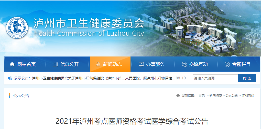 2021年瀘州考點(diǎn)醫(yī)師資格考試醫(yī)學(xué)綜合考試公告