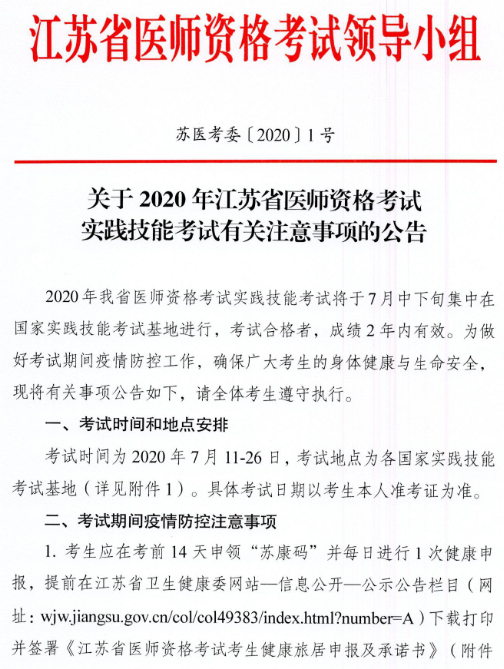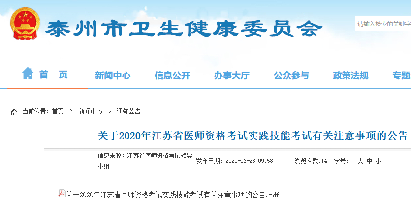泰州市關(guān)于2020年江蘇省醫(yī)師資格考試實踐技能考試有關(guān)注意事項的公告