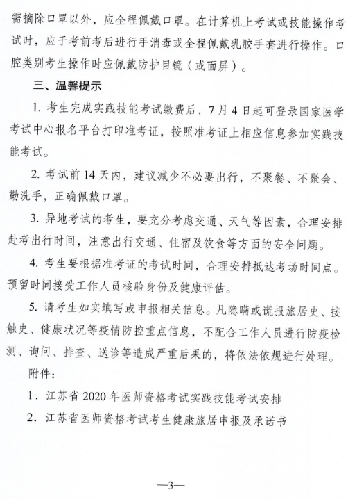 江蘇省2020年醫(yī)師資格考試實踐技能疫情防控注意事項