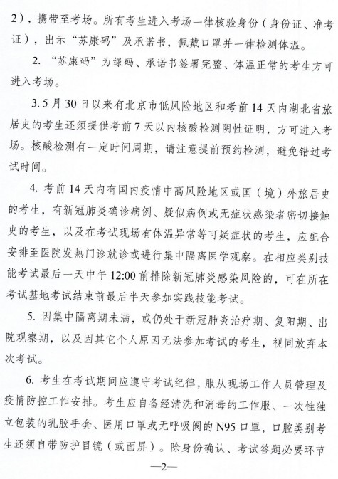 江蘇省2020年醫(yī)師資格考試實踐技能疫情防控注意事項