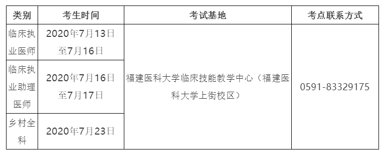福州考點(diǎn)2020年國家醫(yī)師資格實(shí)踐技能考試(臨床/鄉(xiāng)村)