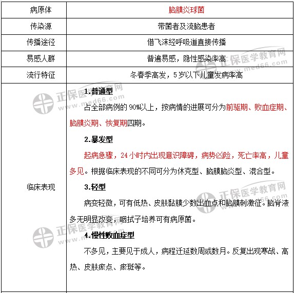 傳染病學(xué)可能考慮今年疫情的原因,題目數(shù)量也有所增加。2021年依然是中西醫(yī)執(zhí)業(yè)/助理醫(yī)師考試復(fù)習(xí)不能忽略的科目,占比16分,也是比較好拿分的科目。2021年中西醫(yī)結(jié)合執(zhí)業(yè)/助理醫(yī)師考試傳染病的復(fù)習(xí)內(nèi)容,相信是2021年中西醫(yī)結(jié)合執(zhí)業(yè)/助理醫(yī)師考生們關(guān)注的問(wèn)題,醫(yī)學(xué)教育網(wǎng)鄭芪老師整理“一表搞定傳染病學(xué)流腦知識(shí)點(diǎn)——中西醫(yī)執(zhí)業(yè)/助理醫(yī)師鄭芪干貨”如下,希望可以幫助同學(xué)順利通過(guò)考試。