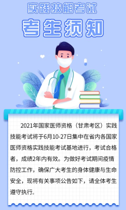 武威市發(fā)布2021年國(guó)家醫(yī)師資格實(shí)踐技能考試考生須知