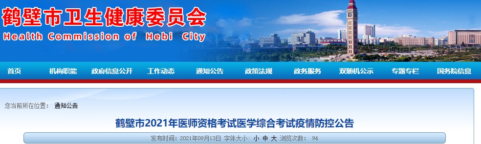 鶴壁市2021年醫(yī)師資格考試醫(yī)學(xué)綜合考試疫情防控公告