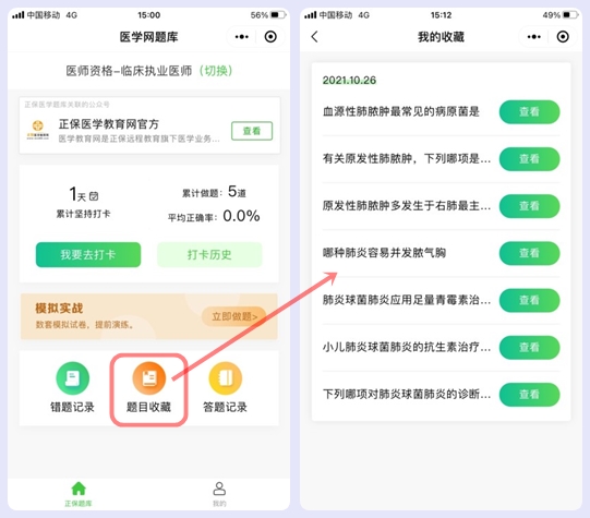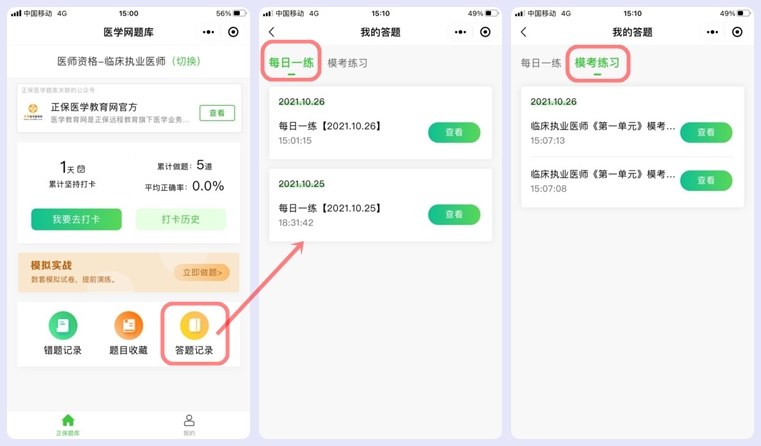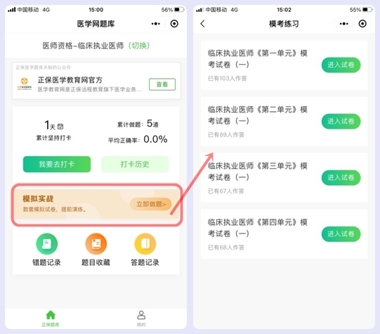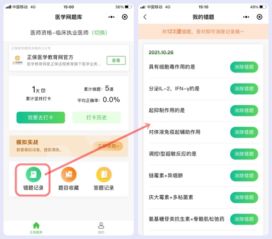 經(jīng)過多年醫(yī)考培訓(xùn)積攢的成功經(jīng)驗,我們精心研發(fā)了醫(yī)師資格考試11大類別每日打卡題+實戰(zhàn)??碱},涵蓋醫(yī)師資格考試各科目知識點,并且為了方便各位考生學(xué)習(xí),我們制作了承載著我們心血的微信小程序“正保醫(yī)學(xué)題庫”,現(xiàn)在免費分享給大家,自此刷題不再是抱著書本才能做的事情了,只要打開您的手機(jī)就可以隨時隨地的開啟刷題模式哦。