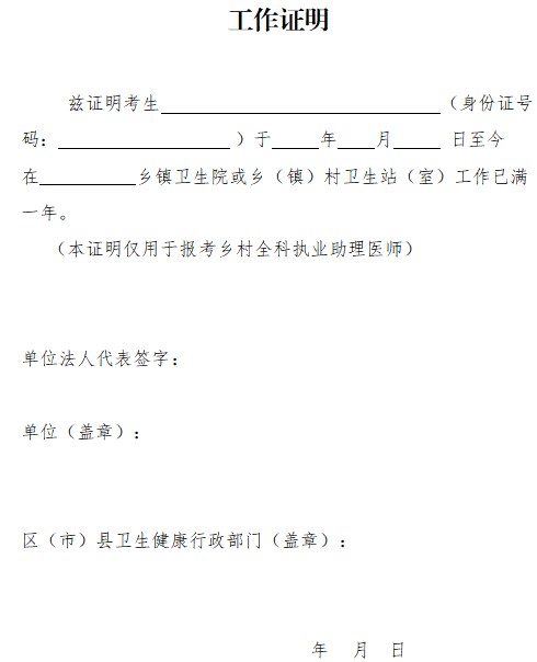 眉山市2022年報(bào)考鄉(xiāng)村全科執(zhí)業(yè)助理醫(yī)師《工作證明》模板