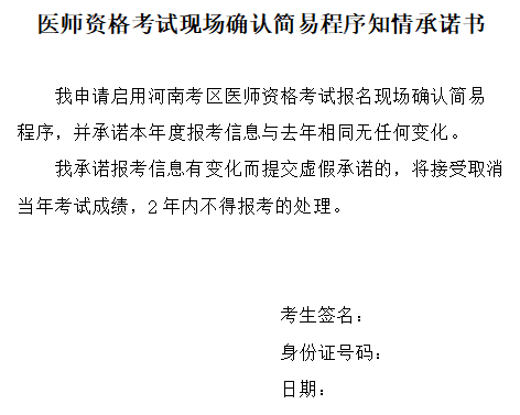醫(yī)師資格考試現(xiàn)場(chǎng)確認(rèn)簡(jiǎn)易程序知情承諾書