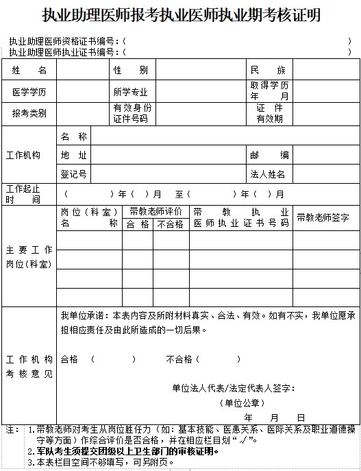 執(zhí)業(yè)助理醫(yī)師報考執(zhí)業(yè)醫(yī)師執(zhí)業(yè)期考核證明2022年(鶴壁市)