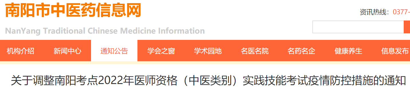 關(guān)于調(diào)整南陽(yáng)考點(diǎn)2022年醫(yī)師資格(中醫(yī)類別)實(shí)踐技能考試疫情防控措施的通知