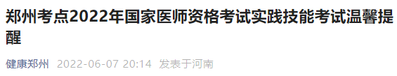 鄭州考點2022年國家醫(yī)師資格考試實踐技能考試溫馨提醒