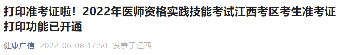 2022年醫(yī)師資格實(shí)踐技能考試江西考區(qū)考生準(zhǔn)考證打印已開(kāi)通!