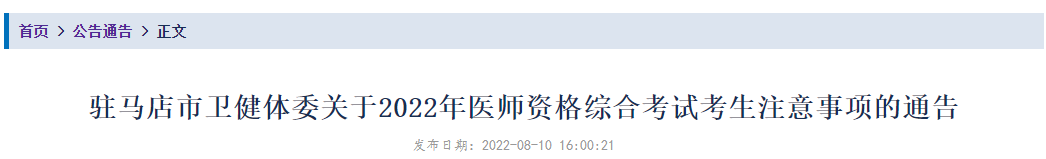 駐馬店市衛(wèi)健體委關于2022年醫(yī)師資格綜合考試考生注意事項的通告