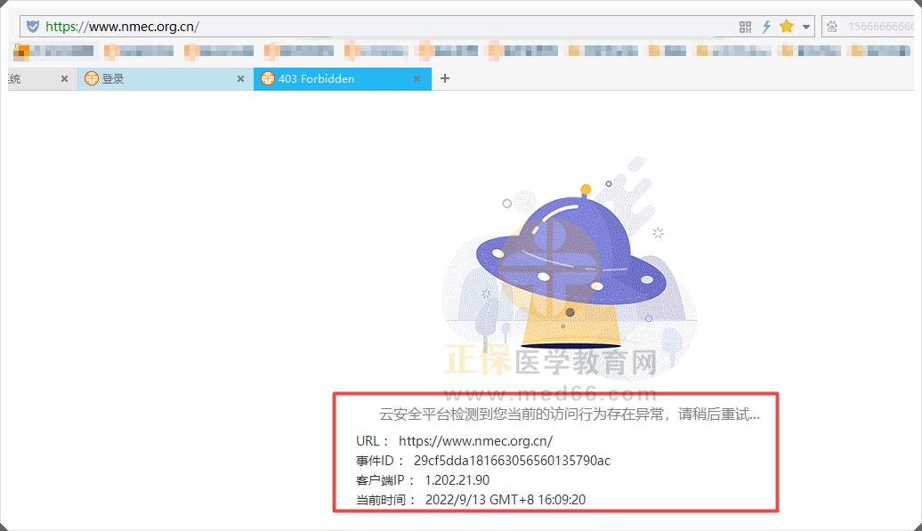 遇到403狀態(tài)碼時,除非你與Web服務(wù)器管理員聯(lián)系,否則無法自行解決。小編提醒大家,各位考生不要著急,耐心等待,相信國家醫(yī)學(xué)考試網(wǎng)的程序員小哥哥正在進行調(diào)試。大家可以晚點登錄嘗試哦!