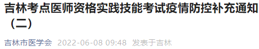 吉林考點(diǎn)醫(yī)師資格實(shí)踐技能考試疫情防控補(bǔ)充通知匯總