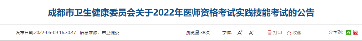 成都市衛(wèi)生健康委員會(huì)關(guān)于2022年醫(yī)師資格考試實(shí)踐技能考試的公告