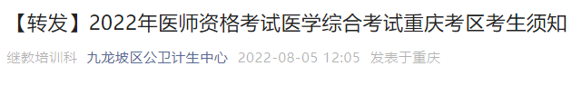 九龍坡區(qū)【轉(zhuǎn)發(fā)】2022年醫(yī)師資格考試醫(yī)學(xué)綜合考試重慶考區(qū)考生須知