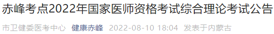 赤峰考點(diǎn)2022年國(guó)家醫(yī)師資格考試綜合理論考試公告