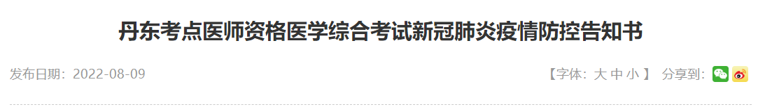 丹東考點2022年醫(yī)師資格醫(yī)學(xué)綜合考試新冠肺炎疫情防控告知書
