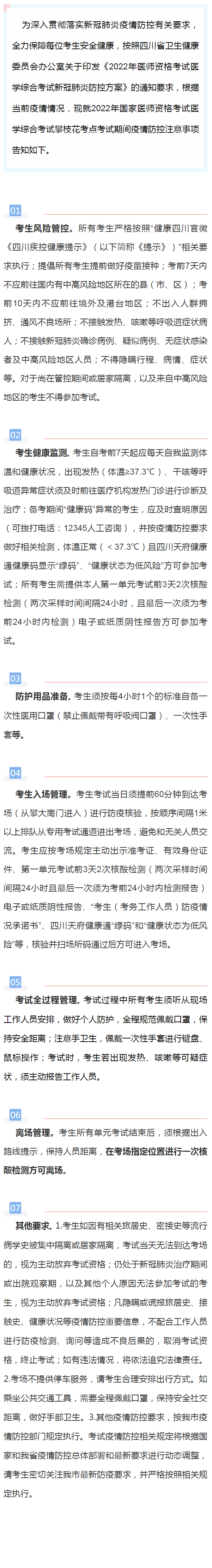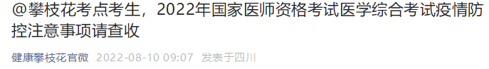 @攀枝花考點(diǎn)考生,2022年國(guó)家醫(yī)師資格考試醫(yī)學(xué)綜合考試疫情防控注意事項(xiàng)請(qǐng)查收!