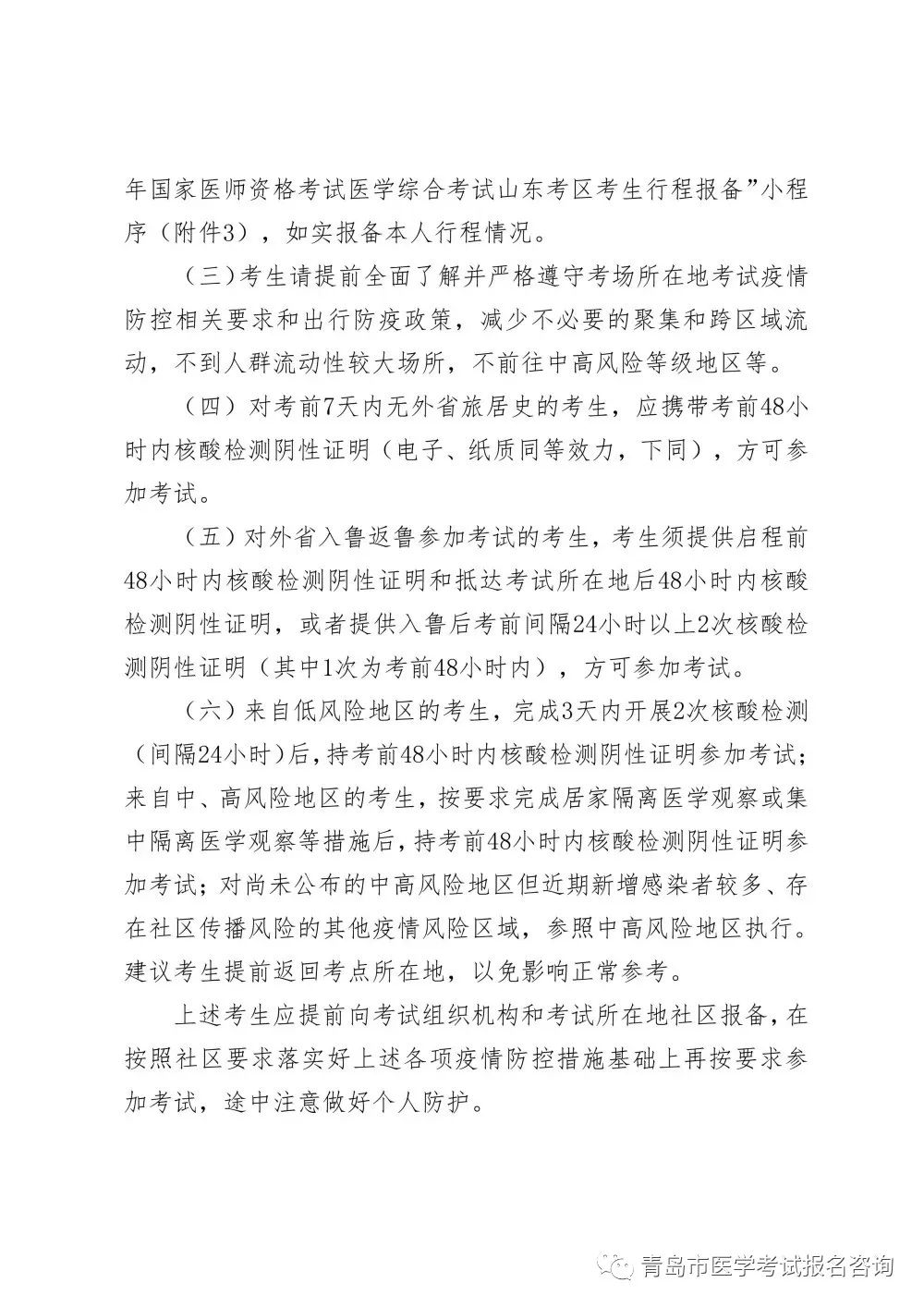 2022年國家醫(yī)師資格考試醫(yī)學綜合考試青島考點疫情防控考生須知