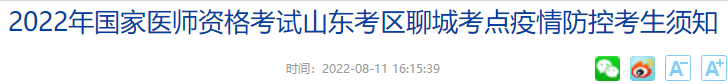 2022年國家醫(yī)師資格考試山東考區(qū)聊城考點(diǎn)疫情防控考生須知