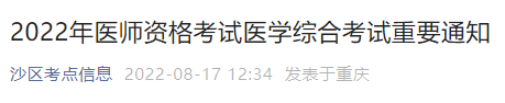 重慶沙坪壩區(qū)考點(diǎn)2022年醫(yī)師資格考試醫(yī)學(xué)綜合考試重要通知