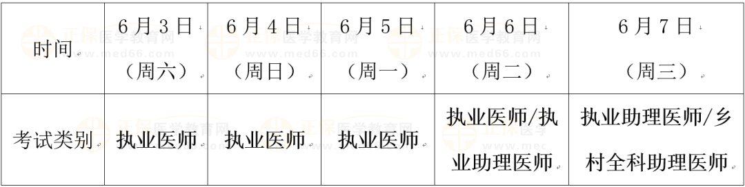 考試分為上午7:30和下午1:30兩個輪次,其中6月6日執(zhí)業(yè)助理考試時間為14:30開始,請考生按照準(zhǔn)考證上的時間參加考試。