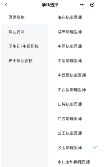 開設(shè)類別:臨床執(zhí)業(yè)醫(yī)師、臨床助理醫(yī)師、中醫(yī)執(zhí)業(yè)醫(yī)師、中醫(yī)助理醫(yī)師、中西醫(yī)執(zhí)業(yè)醫(yī)師、中西醫(yī)助理醫(yī)師、口腔執(zhí)業(yè)醫(yī)師、口腔助理醫(yī)師、公衛(wèi)執(zhí)業(yè)醫(yī)師、公衛(wèi)助理醫(yī)師、鄉(xiāng)村全科助理醫(yī)師。
