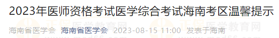 2023年醫(yī)師資格考試醫(yī)學(xué)綜合考試海南考區(qū)溫馨提示