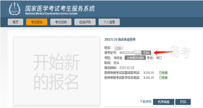 海南省2023年醫(yī)師資格考試醫(yī)學(xué)綜合考試二試準(zhǔn)考證打印須知