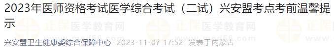 2023年醫(yī)師資格考試醫(yī)學綜合考試(二試)興安盟考點考前溫馨提示