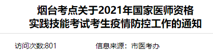 2021年國家醫(yī)師資格實踐技能考試煙臺考點疫情防控通知