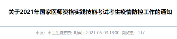2021年國家醫(yī)師資格實踐技能考試濱州考點疫情防控通知
