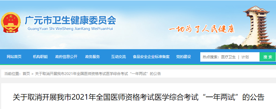 廣元市衛(wèi)健委發(fā)布關(guān)于取消開展我市2021年全國(guó)醫(yī)師資格考試醫(yī)學(xué)綜合考試“一年兩試”的公告