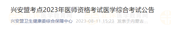 內(nèi)蒙古興安盟考點2023年醫(yī)師資格考試醫(yī)學(xué)綜合考試公告