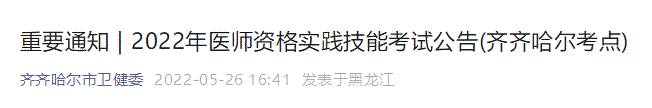 2022年醫(yī)師資格實踐技能考試公告(齊齊哈爾考點)