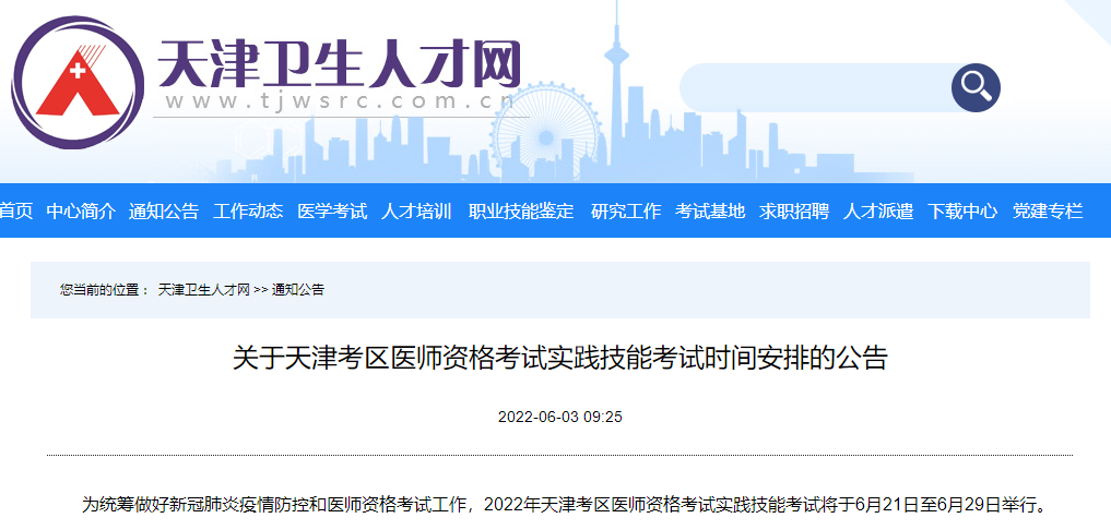 天津技能考試時間確定!關于天津考區(qū)醫(yī)師資格考試實踐技能考試時間安排的公告