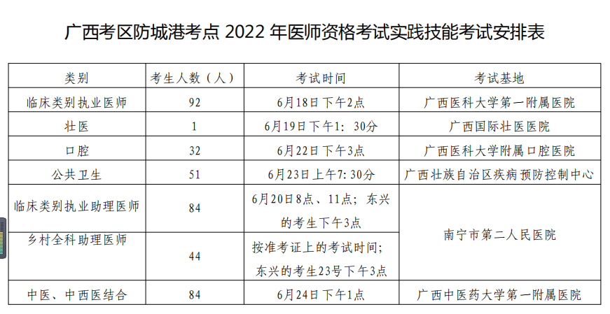 廣西考區(qū)防城港市考點2022年醫(yī)師資格實踐技能考試延考時間確定!