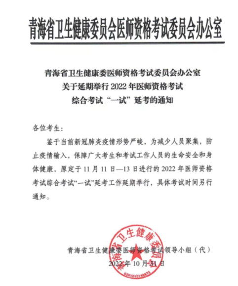 青海省關(guān)于延期舉行2022年醫(yī)師資格綜合考試“一試”延考通知!