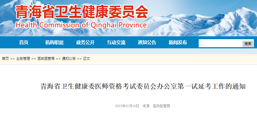 青海省衛(wèi)生健康委醫(yī)師資格考試委員會(huì)辦公室第一試延考工作的通知