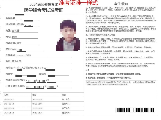 延邊考點2024年醫(yī)師資格考試醫(yī)學(xué)綜合考試考生須知