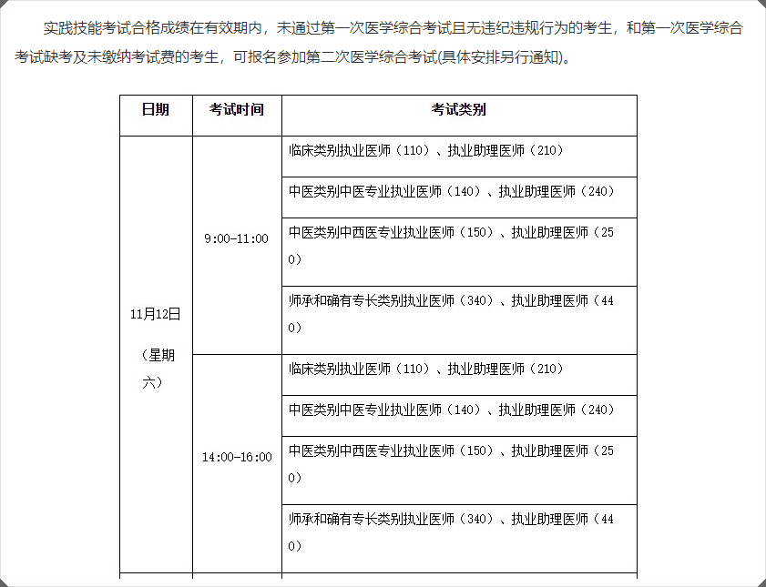 2022年繼續(xù)開展醫(yī)師資格考試臨床類別、中醫(yī)類別具有規(guī)定學(xué)歷中醫(yī)醫(yī)學(xué)綜合考試“一年兩試”試點(diǎn)。在試點(diǎn)考區(qū)已報(bào)考當(dāng)年醫(yī)師資格考試,實(shí)踐技能考試合格成績?cè)谟行趦?nèi),未通過第一次醫(yī)學(xué)綜合考試且無違紀(jì)違規(guī)行為的考生和第一次醫(yī)學(xué)綜合考試缺考及未繳納考試費(fèi)的考生可報(bào)名參加第二次醫(yī)學(xué)綜合考試。試點(diǎn)考區(qū)名單及其他安排另行通知。